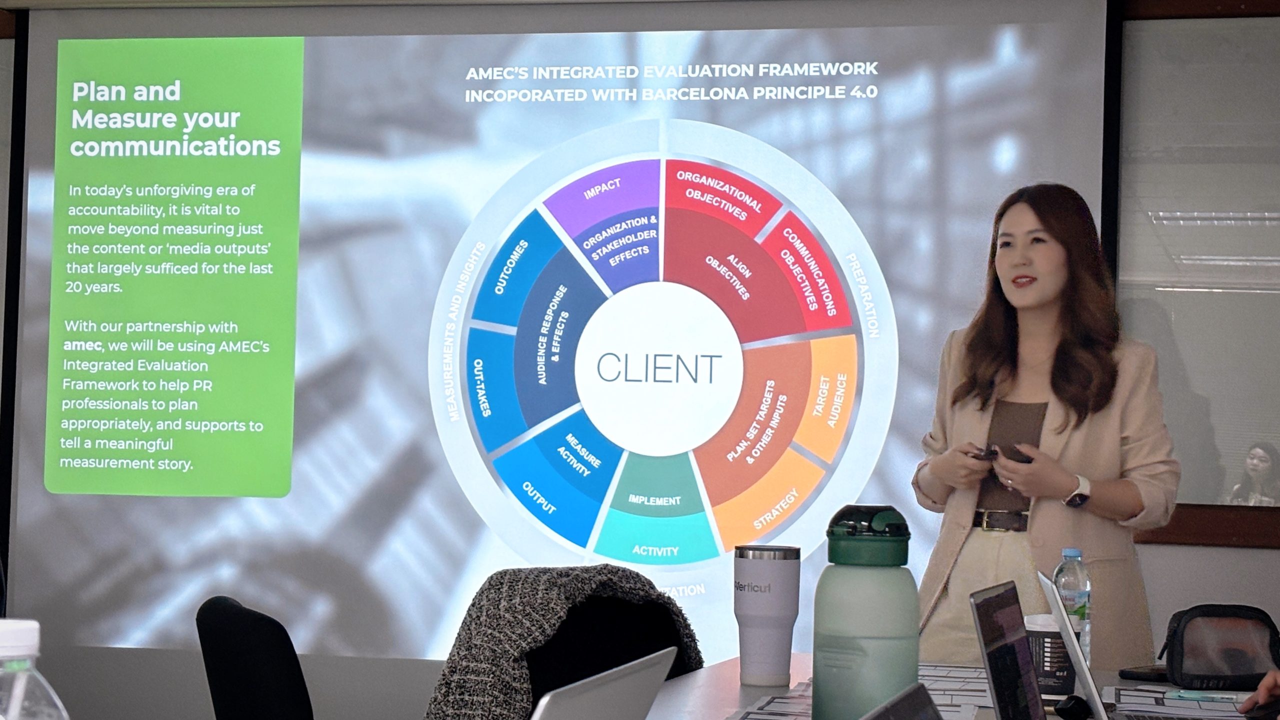 ในโอกาสนี้ เราได้รับเกียรติจาก Felicia Nugroho ประธาน AMEC Board ภูมิภาคเอเชียแปซิฟิก ที่มาแบ่งปันกรณีศึกษาความสำเร็จและประสบการณ์การปรับใช้ Framework ในองค์กรต่าง ๆ รวมถึง Rainee Ang – Dataxet Chief Insight Officer ที่มาร่วมเสริมความเข้าใจเชิงลึกให้กับทีมของเรา เราขอขอบคุณทั้งสองท่านสำหรับการถ่ายทอดความรู้และมุมมองอันมีค่า