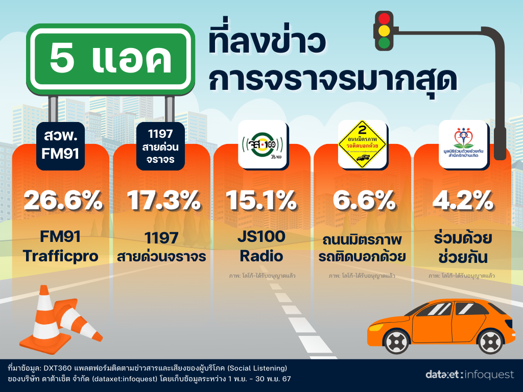 เพจ Facebook และแอคเคาท์ที่ลงข่าวการจราจรมากที่สุด 5 อันดับแรก