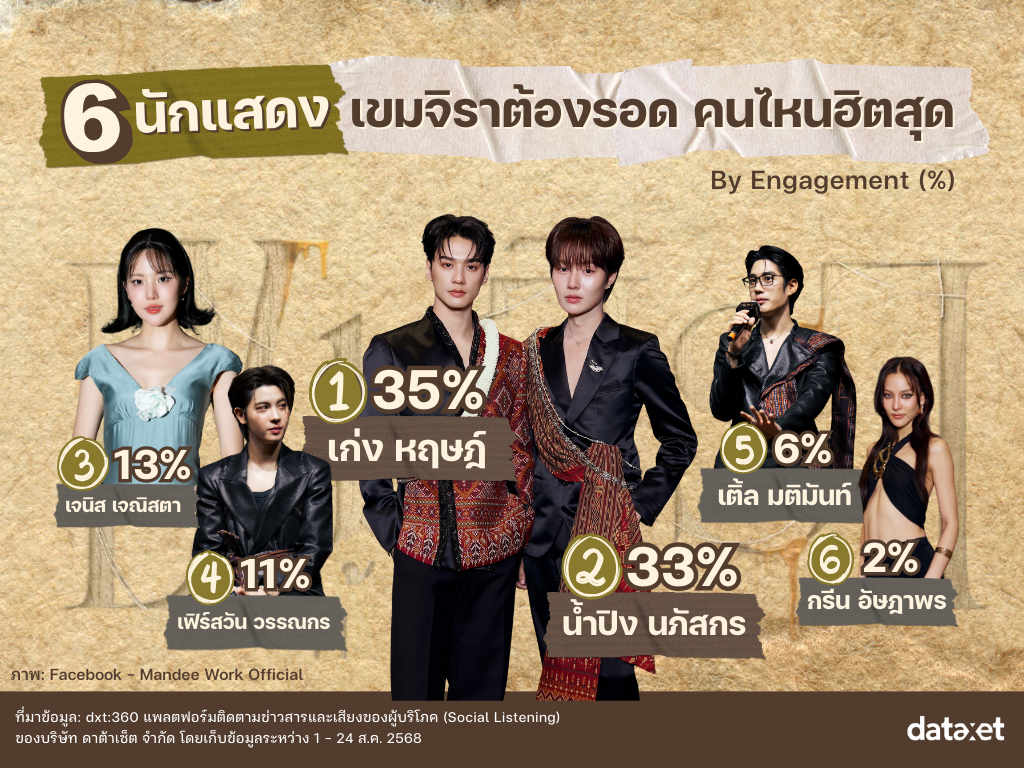 6 นักแสดง เขมจิราต้องรอด คนไหนฮิตสุด (by Engagement)