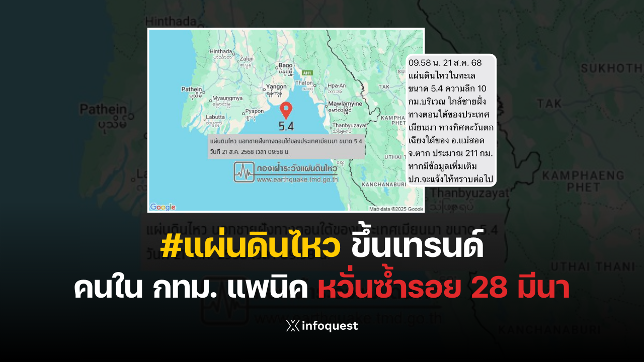 เช้าวันนี้ hashtag #แผ่นดินไหว พุ่งขึ้นเทรนด์อันดับต้น ๆ ของแพลตฟอร์มเอ็กซ์ประเทศไทย หลังประชาชนในกรุงเทพฯ หลายพื้นที่รู้สึกสั่นสะเทือนเมื่อเวลา 09.58 น.