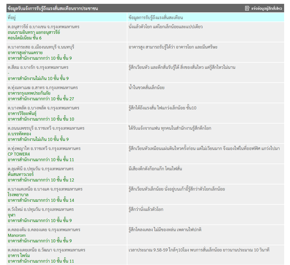 เว็บไซต์กองเฝ้าระวังแผ่นดินไหว กรมอุตินิยมวิทยา รายงานข่าวการเกิดเหตุแผ่นดินไหวครั้งนี้ได้อย่างรวดเร็ว พร้อมเผยแพร่ข้อมูลการรับแจ้งการรับรู้ถึงแรงสั่นสะเทือนจากประชาชน